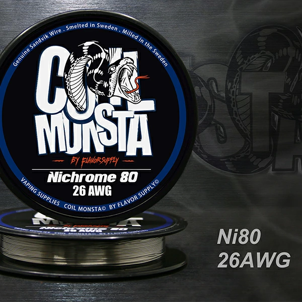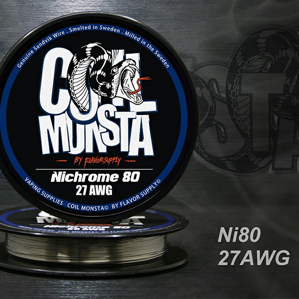 怪獸線圈 CoilMonsta Ni80:採用 Genuine Sandvik Wire 瑞典原線,極低電阻,最高工作溫度達 1200 度。Ni80 鎳鉻合金發熱速度強勁,不易積碳,是追求大煙快感極致口感的 RDA/RTA DIY 神器。